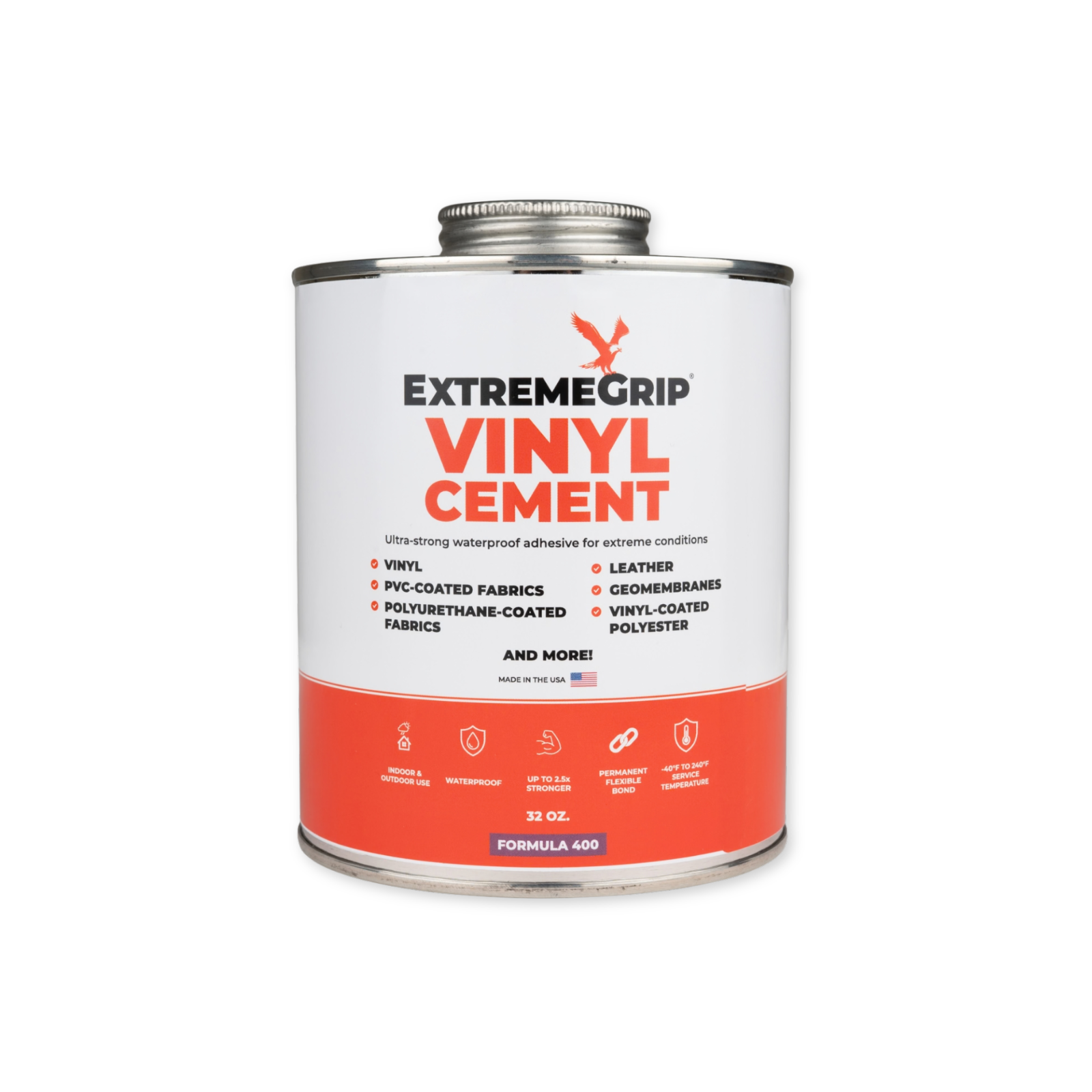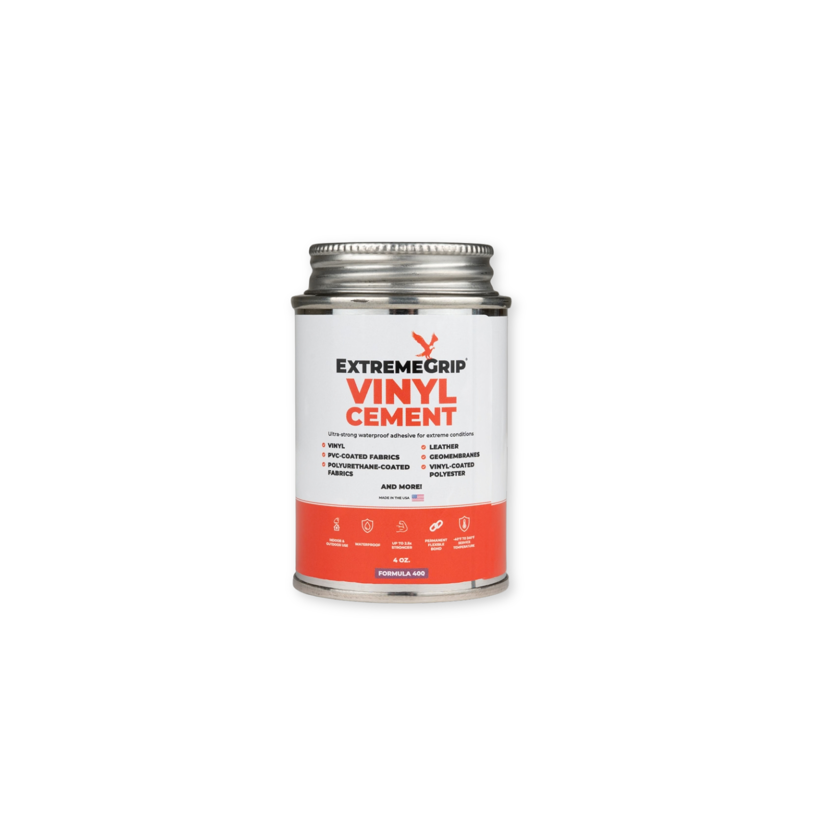 ExtremeGrip Vinyl Cement is engineered for permanent, high-strength bonding of vinyl materials including tarps, coated and laminated fabrics, pool liners, inflatables, and PVC-based substrates. Its fast tack, smooth brush-on application, and flexible, waterproof bond make it ideal for demanding indoor, outdoor, and marine environments. Formulated for professional-grade durability, this solvent-based cement withstands extreme temperatures, weather exposure, and mechanical stress while maintaining exceptional adhesion. Designed for precision repair and fabrication work, it delivers reliable long-term performance for vinyl repair, sealing, and fabrication applications.